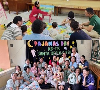 Pada hari Jumat, 8 Januari 2016, peserta didik TB-TK Santa Ursula BSD merayakan ibadat Natal sederhana di Hall Tk. Ibadat Natal ini dimulai pada pukul 07.30. Semua peserta didik terlihat ceria dengan pakaian bebas Mereka juga dilibatkan dalam ibadat ini dengan menjadi pembaca acara, pemimpin doa, petugas paduan suara dan penari. Sebagai pengganti homili, Bapak Victor bercerita tentang ‘Tiga Pohon Natal’. Dengan pembawaan yang menarik dan jenaka, para peserta didik ikut tertawa melihat akting dari Bapak Victor. Ibadat natal kali ini diiringi oleh petugas paduan suara yang menyanyikan lagu-lagu natal dan ditutup dengan tarian Natal yang ditarikan oleh seluruh peserta didik perempuan TK B. Ibadat ini diakhiri dengan kegembiraan yang terpancar dari wajah peserta didik dan tenaga pendidik TB-TK Santa Ursula BSD.