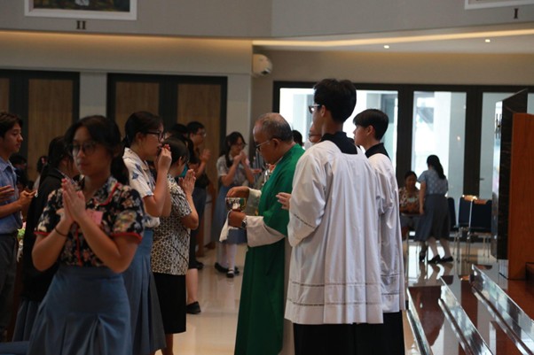 Selain itu, beberapa petugas liturgi juga memberikan kesaksian mengenai proses persiapan mereka. Andra dari kelas XI-A yang bertugas sebagai dirigen koor, menceritakan tantangan memimpin teman-teman yang masih awam dalam bernyanyi paduan suara. Namun, ia bersyukur karena teman-temannya tetap bersemangat untuk belajar dan mau melayani sepenuh hati. Menurutnya, yang terpenting bukanlah hasil nyanyian, tetapi niat pelayanan yang tulus.