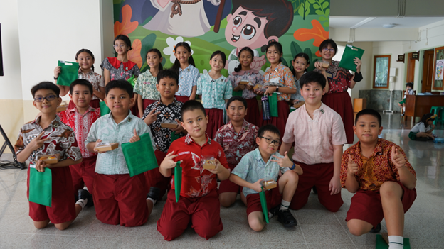 Anak-anak kelas 5 SD Santa Ursula BSD menunjukkan semangat belajar yang tinggi saat melakukan per ...
